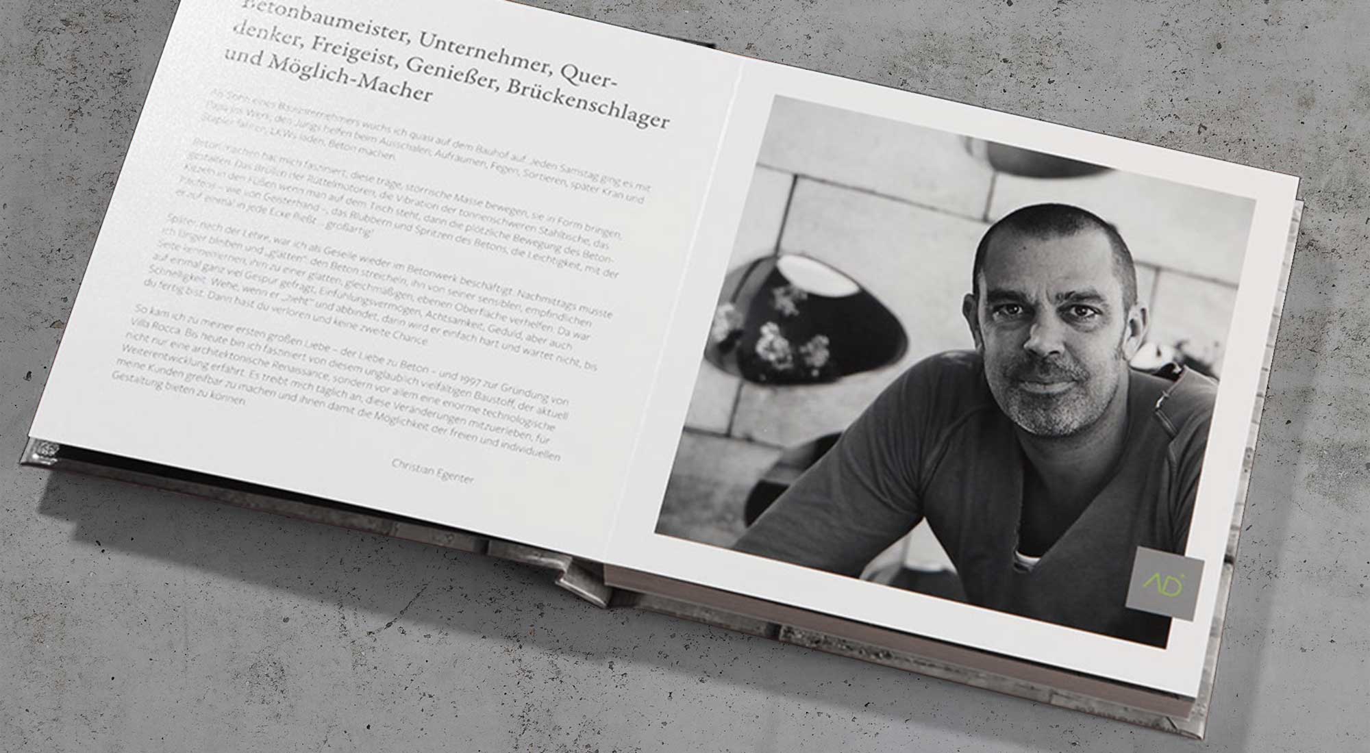 Mit dem "Bilderbuch" hat Christian Egenter insbesondere für Messen eine Info-Broschüre, in der sehr bildstark seine Expertise präsentiert wird. Durch den Einsatz der AR Augmented Reality lernen seine Kunden in Videos und Bilderslidern noch mehr über das Unternehmen kennen.